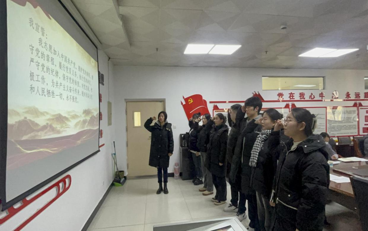 党总支书记王虹宣读大会决议并进行了亲切的谈心谈话,王书记向大家提出三点要求:第一,坚守初心,时刻牢记入党使命,展示新时代大学生党员应有的精神面貌;第二,勇担使命,作为青年党员,要积极投身于基层服务,时刻以党员的标准严格要求自己;第三,争作表率,在学习和工作中,展现先锋模范带头作用,在今后的学习工作中继续坚定信念,践行党的宗旨,将青春之躯投入到党和人民的事业中去,做一名无愧于党和人民的优秀人才。
