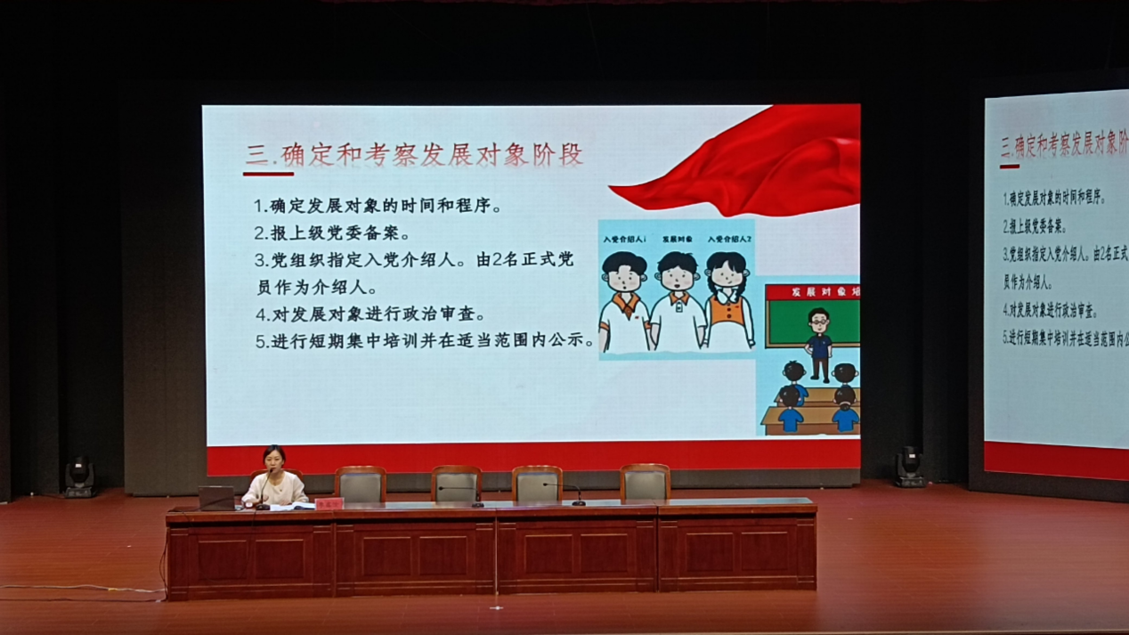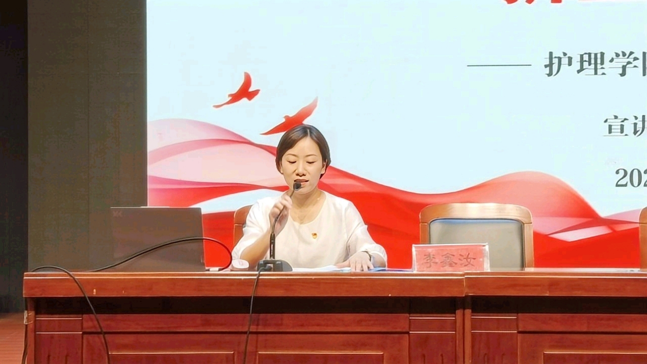 李鑫汝为新生带来大学生涯的第一堂党课,她为新生们讲解了党的性质、宗旨、基本原则等基本理论知识,详细梳理了学生党员发展的基本工作流程,说明了学生入党的基本要求,引导青年应把个人的理想追求融入党和国家事业之中,在大学时光中真正学有所成,为党和国家的事业奋斗,争做时代薪火的赓续者。