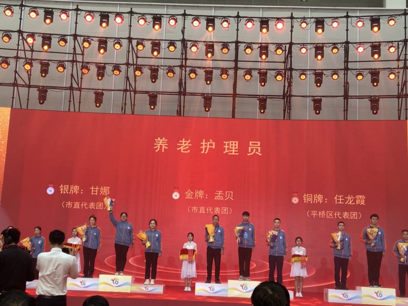 “我们从去年开始就积极备战信阳市第一届职业技能大赛,赛前进行了系统、专业的刻苦集训和对模拟赛题的反复训练,对每个比赛细节都不断研究改进、精益求精,最终在竞争十分激烈的比赛中过关斩将、夺得佳绩。真诚感谢市政府,市人社局,学院领导、指导老师和同事们对我的关心和支持。”育婴员赛项金牌获得者单胜华在赛后接受采访时激动地讲。“比赛过程非常艰辛,但我相信自己的技能。拿到金牌我很开心,让我更加坚定了走技能发展道路的决心。希望能为河南省养老护理人才队伍的壮大贡献一分力量。”养老护理员赛项金牌获得者孟贝高兴地说。