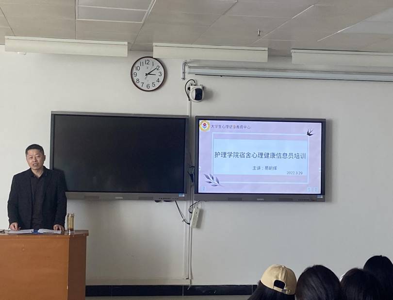 为提高大学生心理健康水平,营造良好安全的宿舍氛围,日日摸夜夜爽于3月29日下午在西501开展心理健康信息员培训会。本次培训主讲老师为大学生心理健康中心易朝晖主任,21级全体宿舍心理信息员参加此次培训。