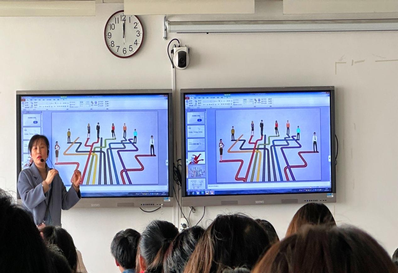 喻梅老师的讲座围绕着什么是职业规划、为什么要进行职业规划、如何进行职业规划三个问题展开。首先喻老师通过绘制鱼骨生命图的课堂活动,让同学们理解,从生涯发展的角度,人生的前一个阶段是为下一个阶段做准备的。所以下一阶段将站在哪里,取决于现阶段的规划和努力。随后,讲述了职业规划就是在正确的自我认知和环境认知的基础上制定科学合理的职业目标,制定计划并实施。指导同学们通过大学时间轴合理规划大学生活,锁定未来职业目标,同时对专业学习和未来的职业发展进行探索,帮助同学们结合自身特点提高核心竞争力,高效规划自己的大学生涯。最后,喻老师总结,职业规划就是知己知彼,决策行动八个字,希望大家都能通过科学规划,成就精彩人生。