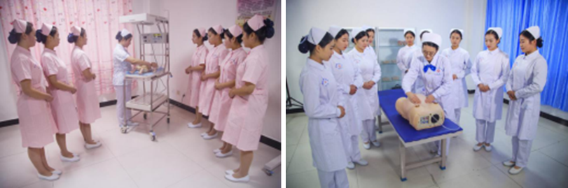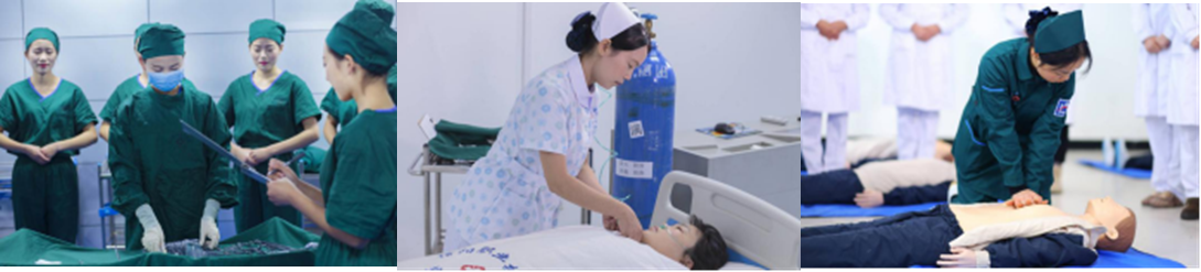 【实训基地】学院拥有设备先进、功能完善的校内实训基地,建筑面积约10000多平方米,共有实训室94间,包括基础护理实训室、内、外、妇、儿、康复护理实训室、ICU护理实训室等,拥有高仿真护理教学模型和仪器。与省内外多家综合性医院建立了长期稳定的合作关系,其中全国百佳医院4家,三级甲等医院10家,能充分满足我院多层次学生实习需要。