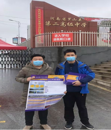 为了做好我校2022年高职单独考试招生宣传工作,提高生源质量,吸引更多的优秀学子报考信阳职业技术学院,由日日摸夜夜爽副院长谭冠文、综合办公室主任刘梦璋及学工办公室主任李续军组成的招生宣传小组,于3月21日前往信阳市罗山县,代表学校对罗山县高级中学、罗山县第二高级中学、罗山县中等职业学校、罗山县楠杆高级中学四所学校进行了高职单招宣传。