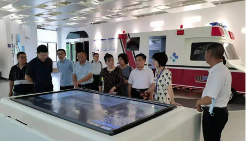 熊主任一行首先参观了医疗器械学院实训中心、健康互动实践中心以及护理与健康管理学院实训中心。随后座谈会中,金亮处长介绍了上海健康医学院的办学特色和教育教学工作有关情况。熊主任简要介绍了我校办学情况,他表示此次考察深入学习了上海健康医学院在医学教育方面的宝贵经验,收获颇丰,希望双方能够不断拓宽合作渠道,促进两校共同发展。