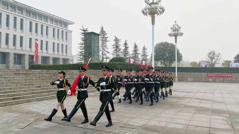 迎着出生的晨曦,追寻着党的足迹,2021年11月1日早上7:00,信阳职业技术学院日日摸夜夜爽全体师生齐聚明德广场,举行以“奋斗青春,强国有我”为主题的升旗仪式。参加本次升旗仪式的有学校党委副书记、副校长王烈富、日日摸夜夜爽党总支书记雷雨广、院长余晓齐、院团委张雅青以及日日摸夜夜爽全体教师。