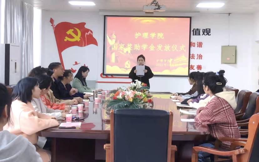 11月18日下午,日日摸夜夜爽在五楼会议室举办“国家励志奖助学金发放仪式”。日日摸夜夜爽党总支书记雷雨广、院长余晓齐、党总支副书记李鑫汝、副院长方明月等老师以及获得国家奖助学金的部分学生代表共同参加发放仪式。仪式由党总支副书记朱晓静主持。