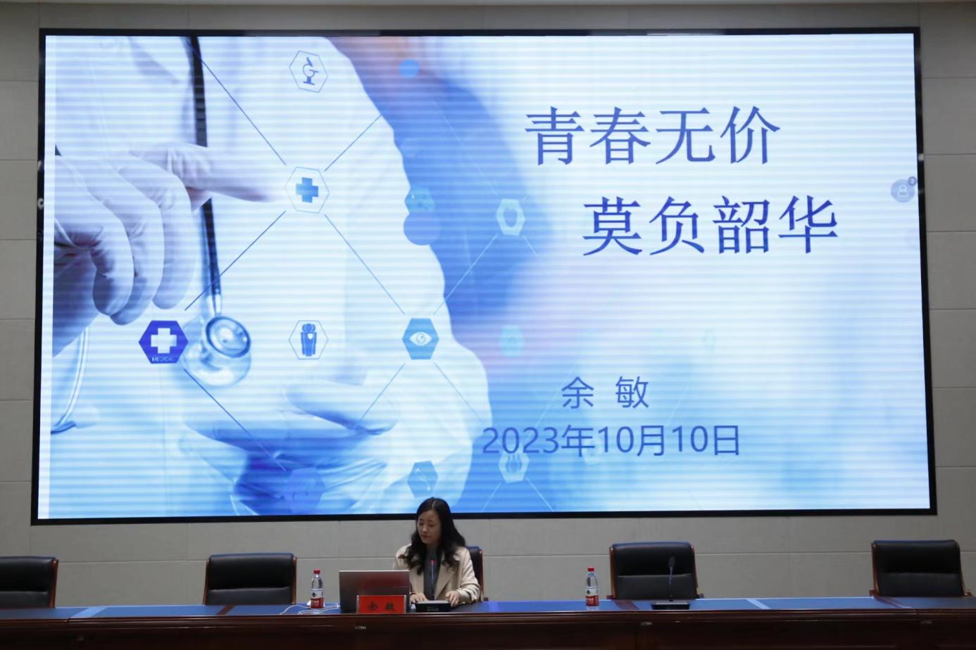 10月15日,在我校庆祝办学120周年高质量发展大会上,余敏作为优秀校友代表在大会上发言。首先她代表往届校友向母校120周年华诞表示热烈的祝贺,向辛勤耕耘的恩师们致以崇高的敬意和感谢。随后分享了自己的工作感悟,她说护理是一项神圣的工作,需要用全部的热情投入其中。她希望学弟学妹们学好基础理论知识,扎实练好专业基本功,以便将来更好的服务患者。