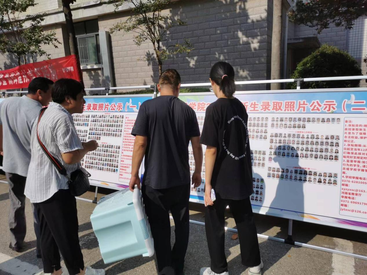 在新生接待点,负责迎新的辅导员和学工领导对照录取信息,认真查看并核对新生的身份证、准考证、录取通知书、收缴新生档案和入学照片,并做好新生信息登记工作,对初审合格的新生,同步登录学校迎新系统,及时更新新生报到情况。