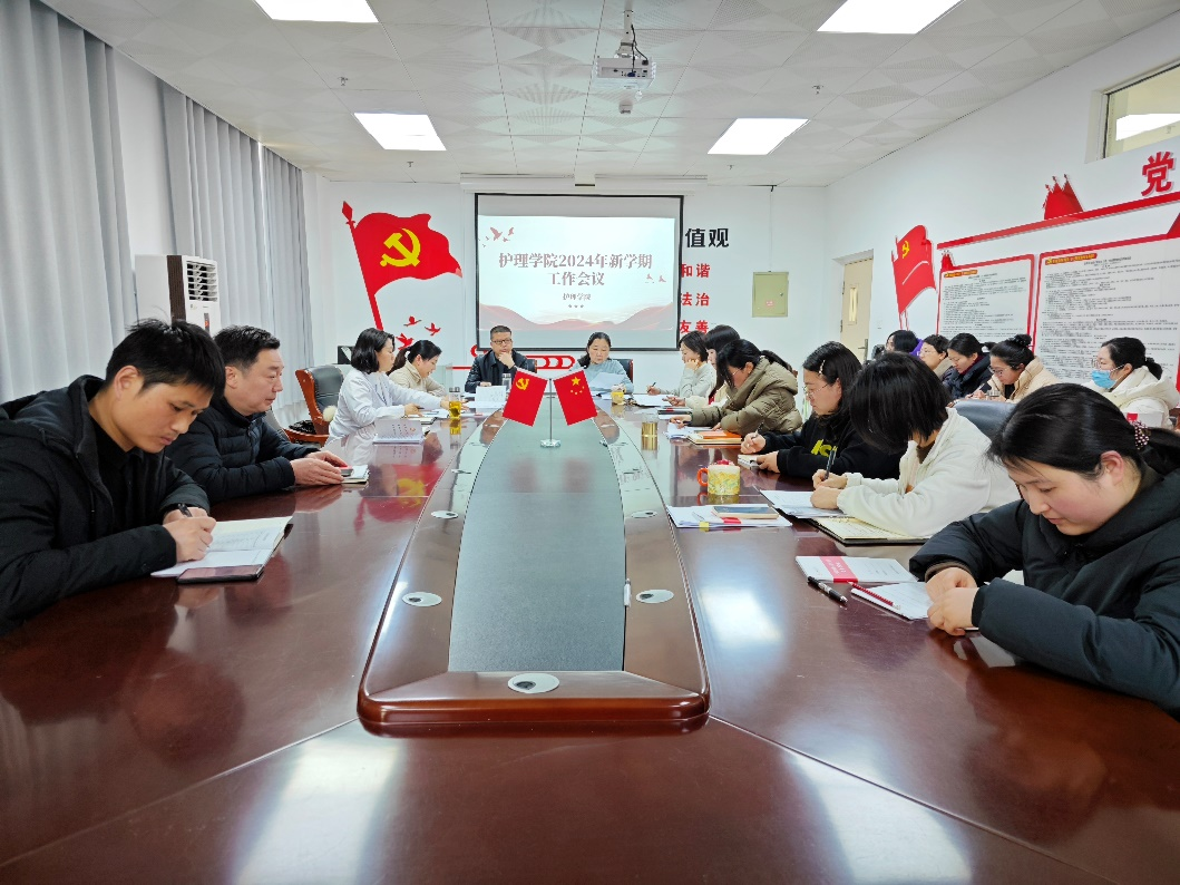2024年3月5日下午,日日摸夜夜爽于五楼会议室召开了2024年新学期工作会,学院党总支书记王虹、院长陈超及全体教师参加会议。