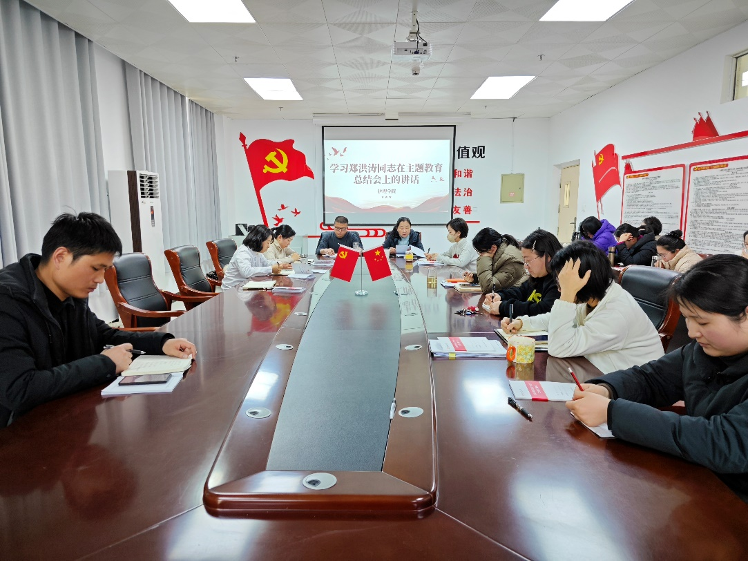 最后,王书记领学了郑洪涛同志在主题教育总结会上的讲话,并对新学期党建、学生、安全等工作提出了具体要求。她激励全体教师要以饱满的精神状态投入到新学期的工作当中,明确职责、脚踏实地、求实创新,为学生成长和学院发展谱写壮丽新篇章。