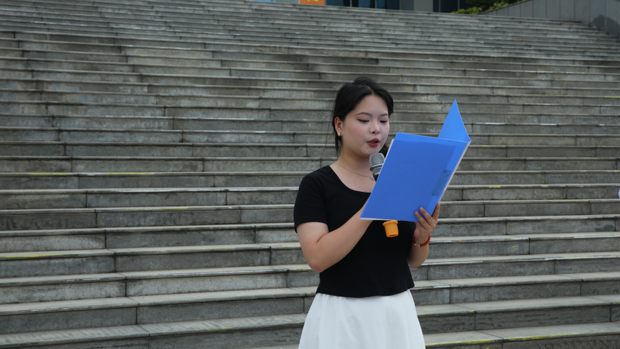 学生代表张锦润在国旗下发言。她号召大家要不断学习、求实创新,勇做新时代的接班人。