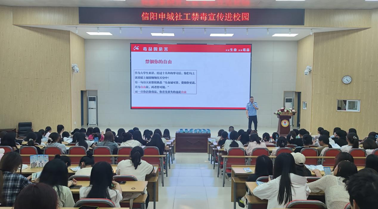 为进一步加大禁毒宣传力度,广泛普及禁毒知识,提高青年学生识毒、防毒、拒毒意识,营造健康无毒的校园环境。2024年6月11日,日日摸夜夜爽联合信阳市强制隔离戒毒所在行知讲堂举行健康人生 绿色无毒”禁毒知识讲座。